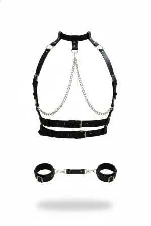 Black Harness Suit Chain Detailed Cuffed Body Accessory - APFT772