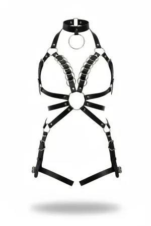 Black Harness Suit Leather O-Ring Detailed Body Accessory - APFT719
