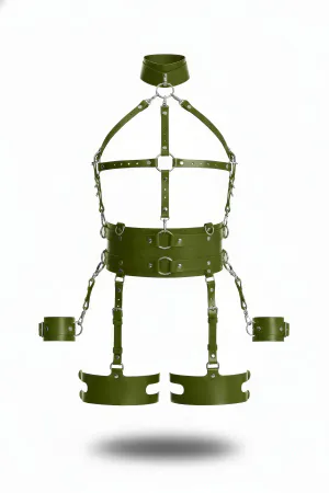 Khaki Harness Suit with Leather Chain Detail and Wide Belt - APFT842