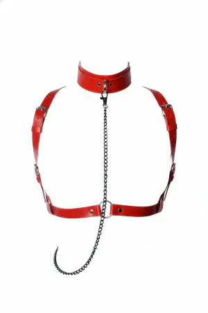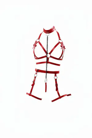 Red Harness Suit Leather Chain Detailed Body Garter - APFT457