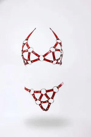 Red Harness Set O-Ring Detailed Body Accessory - APFT402