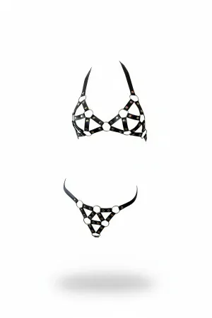 Black Harness Set with Metal Ring Staple Detail - APFT394