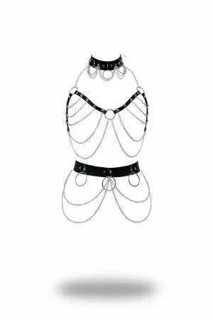 Black Harness Suit Choker Chain Detailed Body Accessory - APFT394