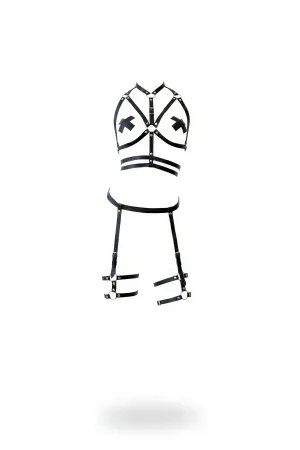 Black Harness Suit Leather Chain Detailed Body Accessory - APFT456