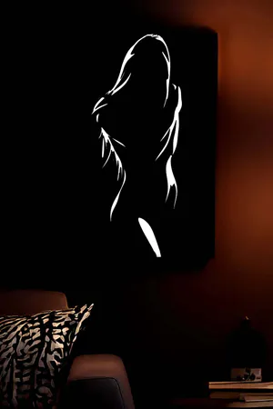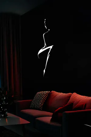 Decorative Painting with Reflective Female Figure and Black Leather Background