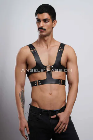 Nail Detailed Men's Chest Harness, Men's Clubwear, Leather Men's Harness - APFTM203