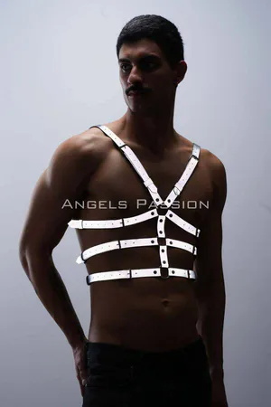 Reflective (Glow in the Dark) Men's Chest Harness, Party Accessory, Clubwear - APFTM17