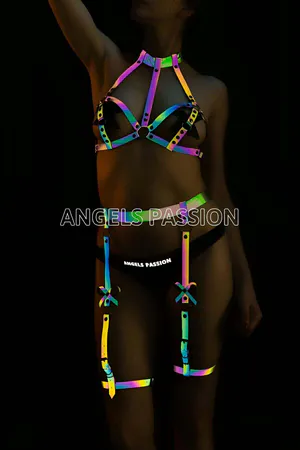 Rainbow Reflective Harness Bra & Garter Set