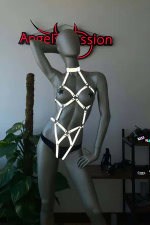 Reflective Harness Lingerie Set with Garters – Luminous Rave Wear