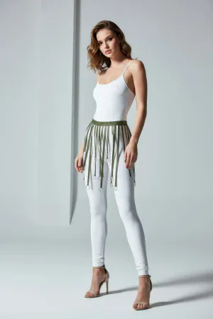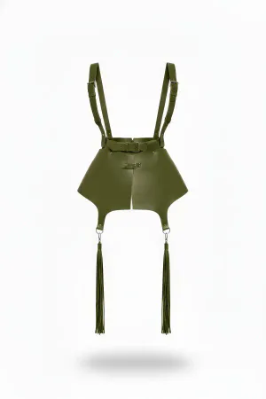 Khaki Skirt Leather Shoulder Detailed Skirt with Tassels - APFT787