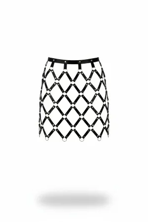 Black Skirt with Leather Buckle and Cross Detail Skirt with Cage Structure - APFT785