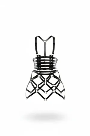 Black Skirt Faux Leather Skirt with Multi-Belt Cage Structure - APFT785