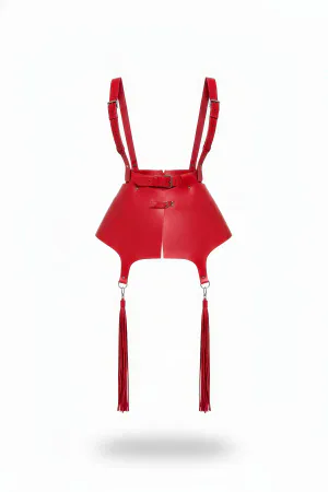 Red Skirt Leather Tassel Detailed Skirt Harness Mini Skirt - APFT787
