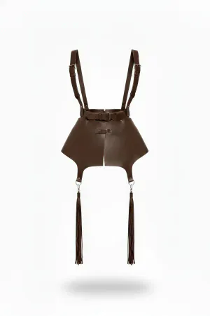 Brown Skirt Leather Shoulder Tie Tassel Mini Skirt - APFT787