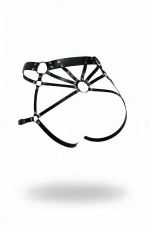 Black Thong - Panties Faux Leather Ring Detailed Harness - APFT889