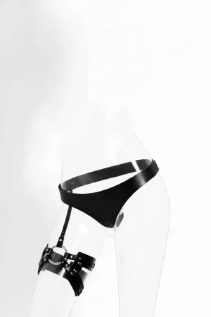 Black Thong - Panties Leather Banded Ring Detailed Hip Accessory - APFT1048