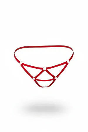 Red Thong - Panty Body Garter with Leather Buckle - APFT732