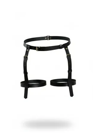 Black Thong - Panties, Multiple Belts, Metal Detailed, Ankle Cuffed Garter - APFT1022