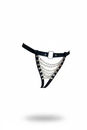 Black Thong - Panties with Faux Leather Chain Detail and Ring Accessory - APFT1278