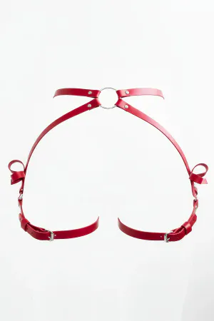 Red Thong - Panty Faux Leather Ring Detailed Body Garter - APFT294
