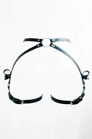 Black Thong - Panty Leather Body Belt with O Ring Detail - APFT294