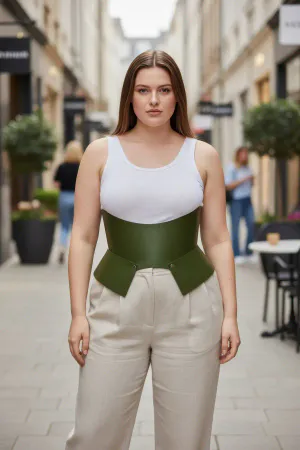 Plus Size Khaki Women's Belt Corset Look Thick Leather - APFT619