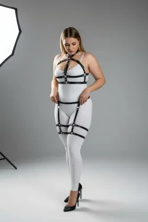 Plus Size Black Women's Leather Harness Suit High Collar Combination Accessory - APFT1286