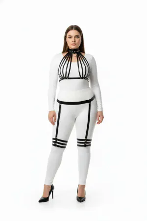 Plus Size Black Women's Harness Set Sexy Bodysuit with Ring Detail - APFT706