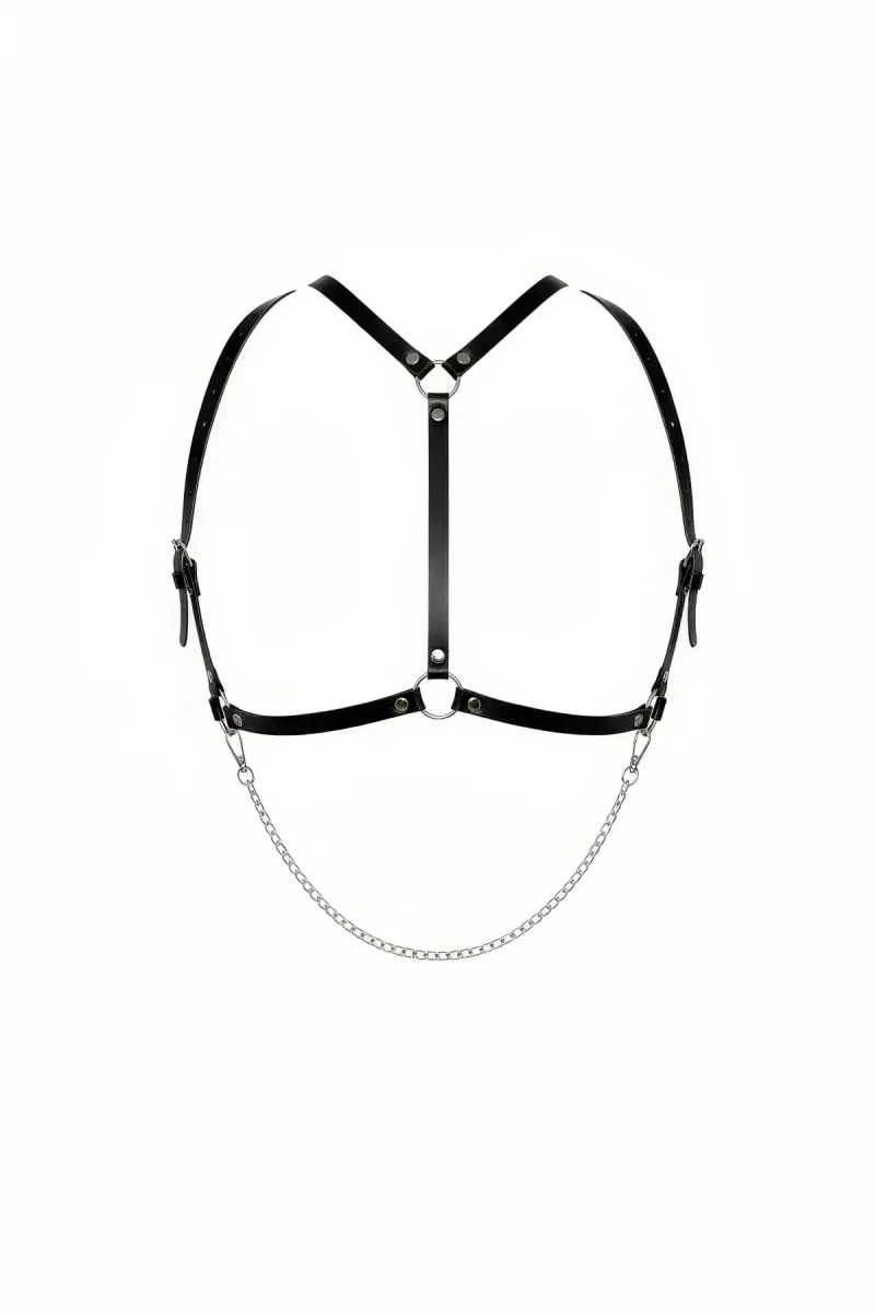 Home/Womens Harness/Chest Harness/Black Chest Harness Chain Detailed Faux Leather Adjustable - APFT1185