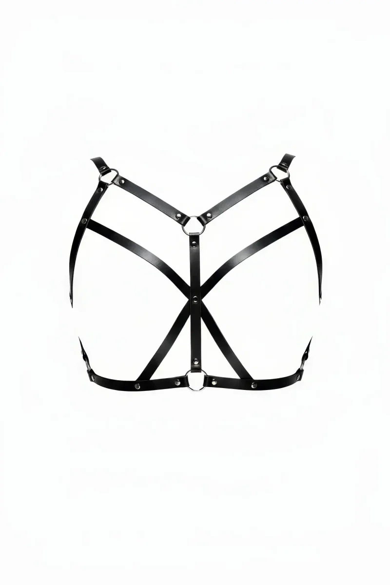 Black Chest Harness Cross Detailed Faux Leather Body Accessory - APFT247