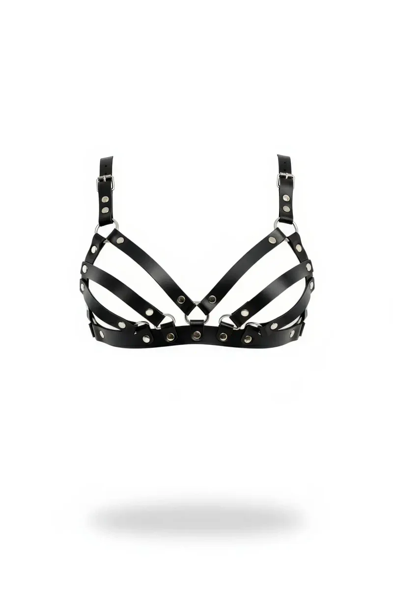 Home/Womens Harness/Chest Harness/Black Chest Harness Faux Leather Adjustable with Staple Detail - APFT733