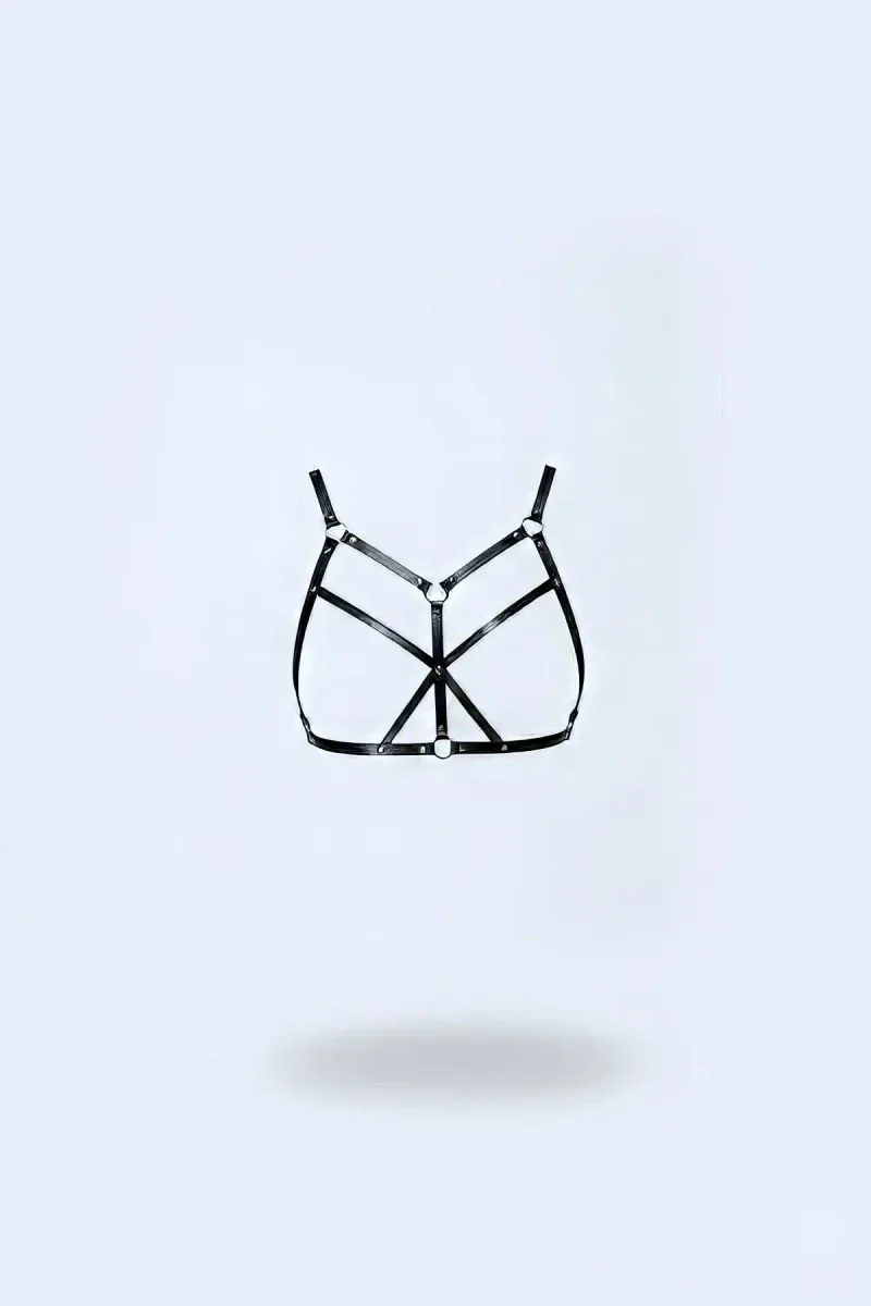 Black Chest Harness Faux Leather Cross-Tied - APFT265