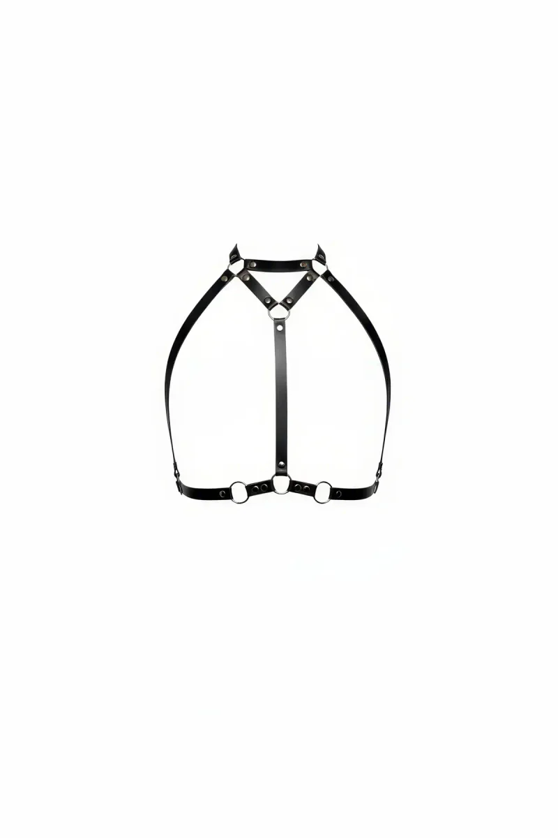 Black Chest Harness with Faux Leather Ring Detailed Neck Collar - APFT184