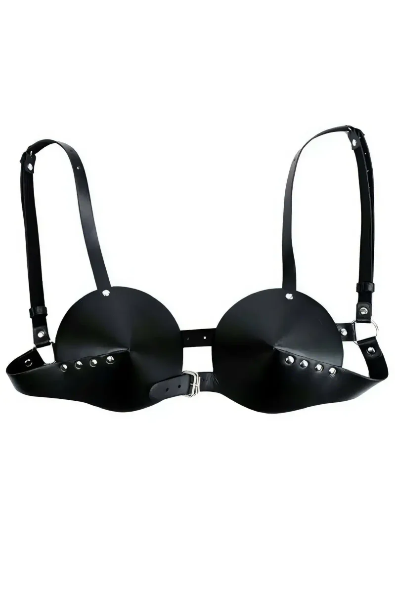 Black Chest Harness Stapled Conical Coated Leather - APFT250