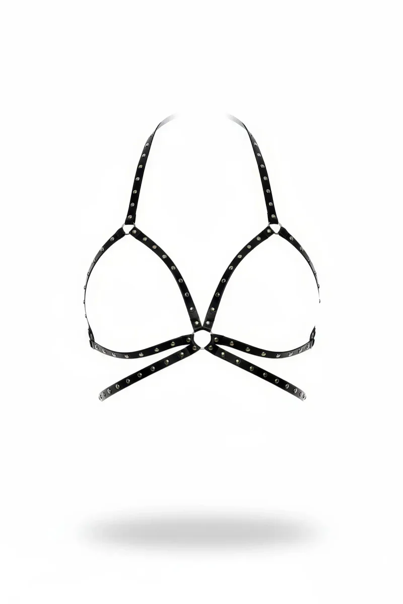 Black Chest Harness with Faux Leather Ring Detailed Neck Collar - APFT184