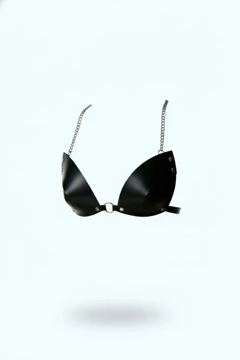Black Chest Harness Faux Leather O-Ring Bralette - APFT190