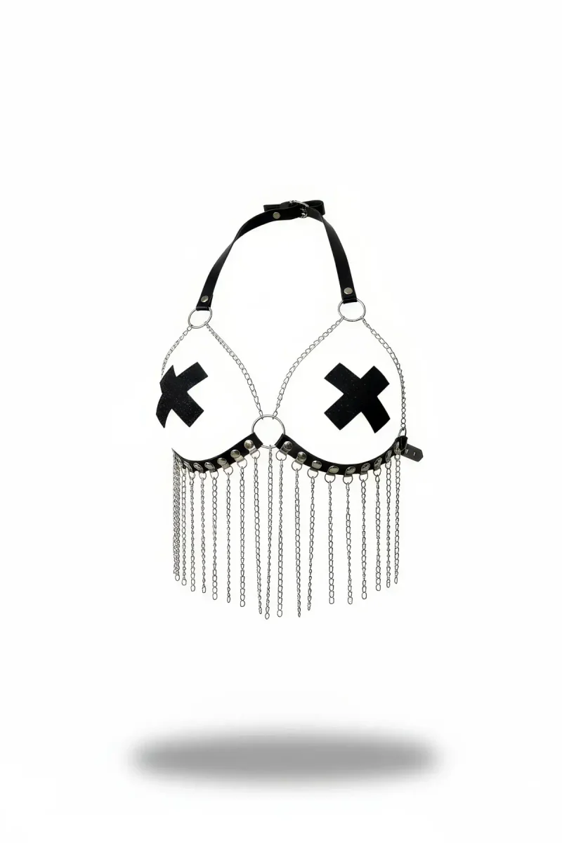Black Chest Harness with Chain Detail and Cross Pattern - APFT477
