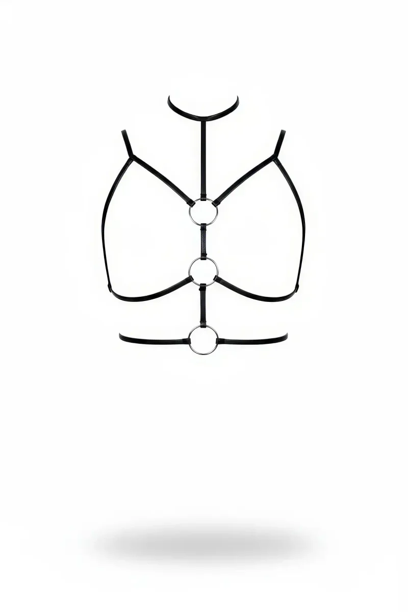 Black Chest Harness Faux Leather O-Ring Bralette - APFT190