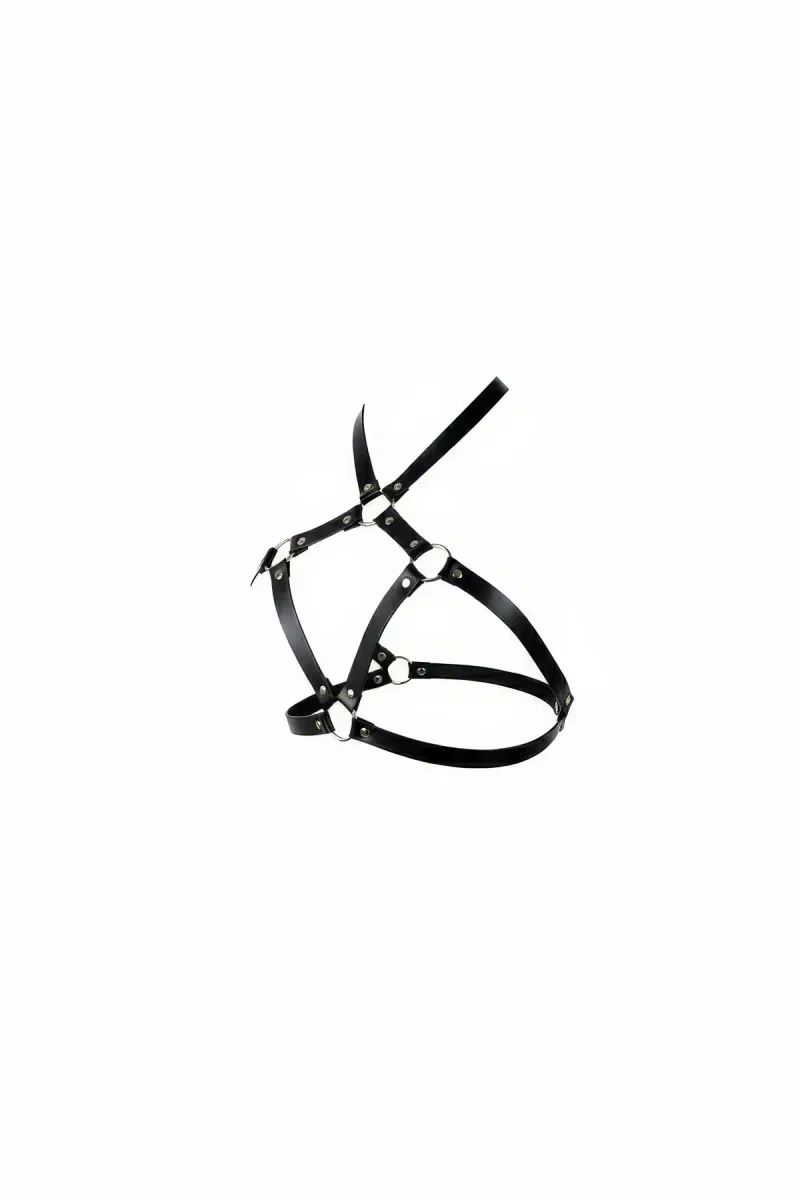 Black Chest Harness with Faux Leather Ring Detailed Neck Collar - APFT184