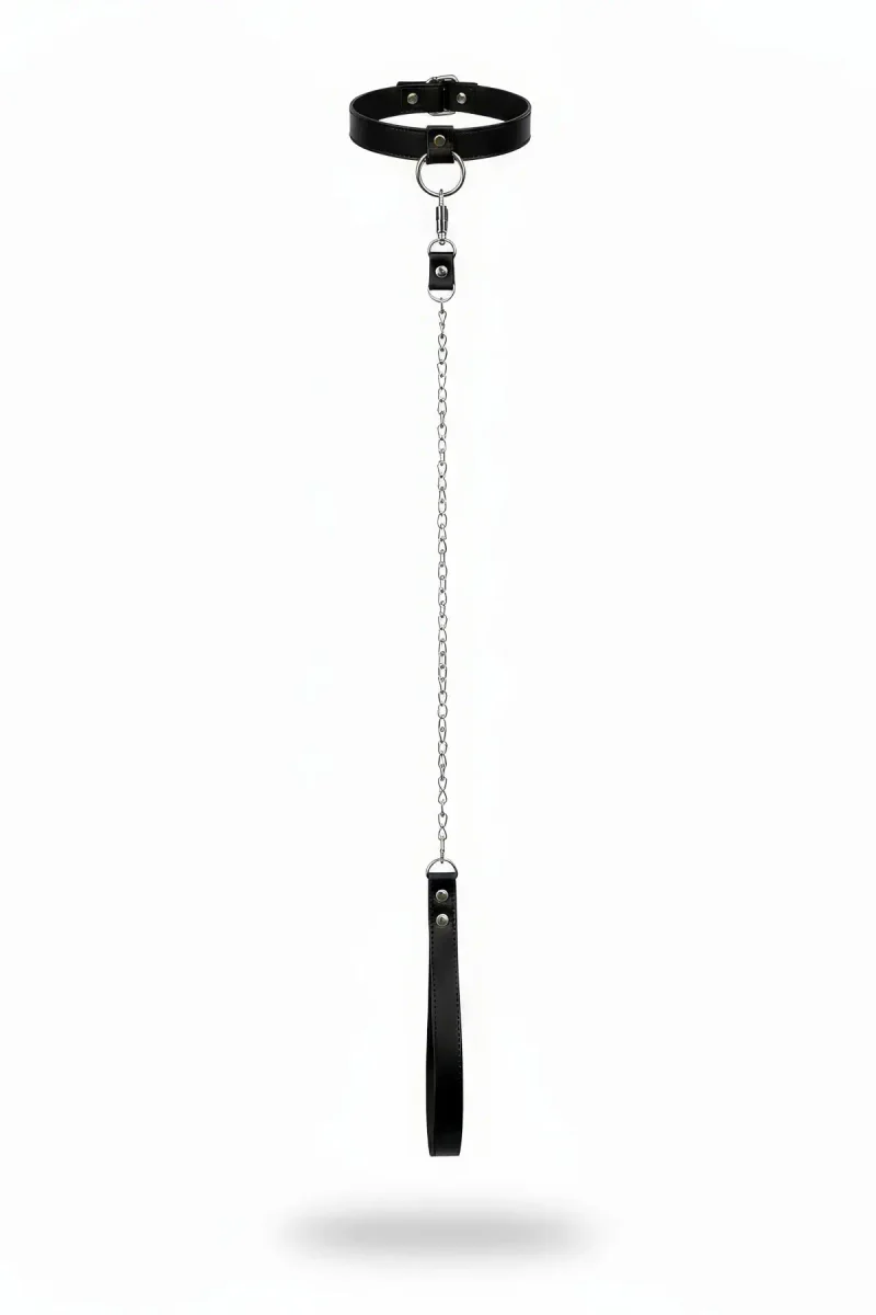 Black Choker Leather Chain Detailed Neck Collar - APFT774