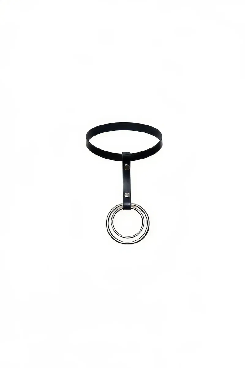 Black Choker with Thick Leather Ring Detail - APFT414