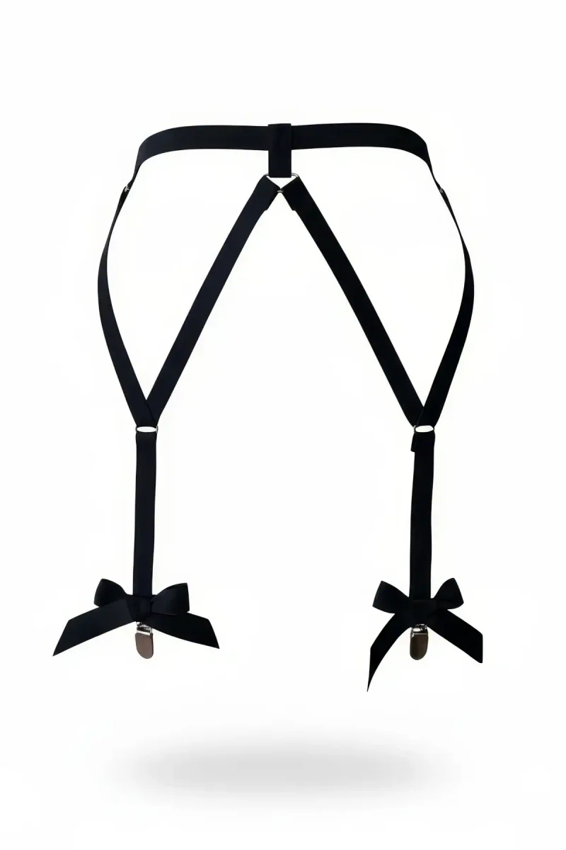 Black Garter Harness Bow Detailed Clip Leg Accessory - APFT68