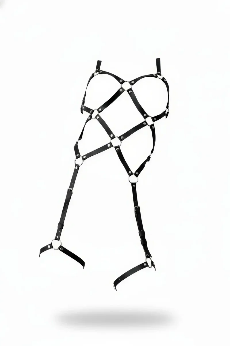 Black Garter Harness Leather Caged Body Accessory - APFT508