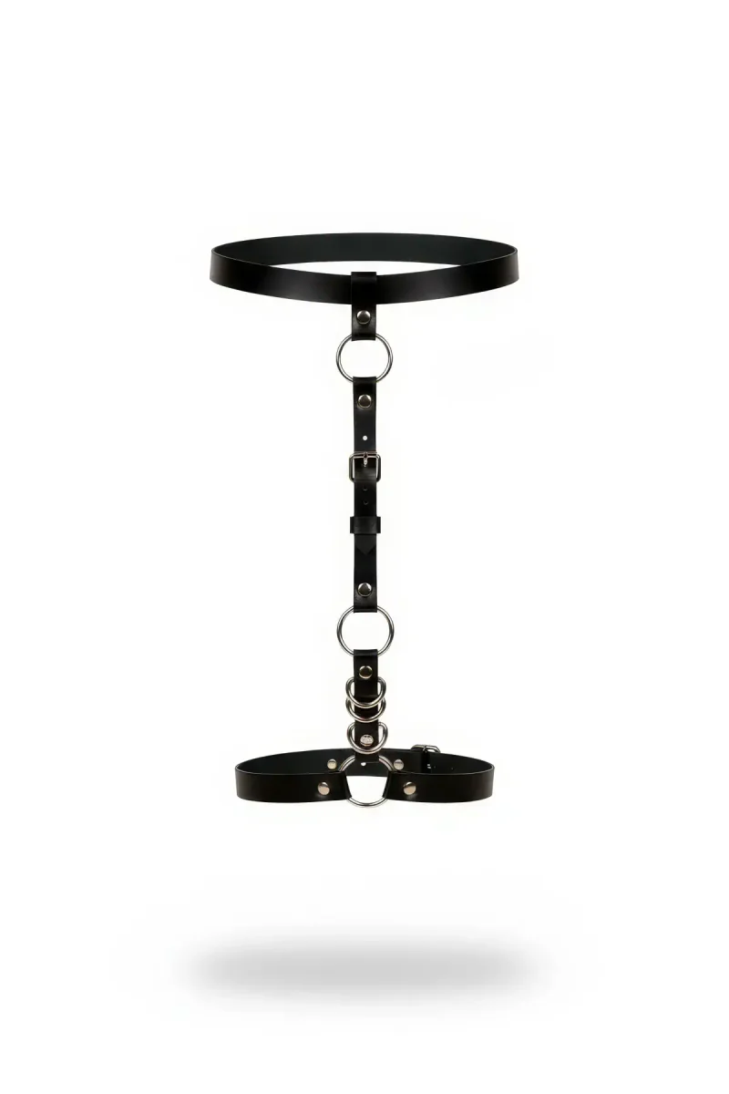 Home/Womens Harness/Garter Harness/Black Garter Harness Leather Ring Detailed Waist Leg Accessory - APFT773