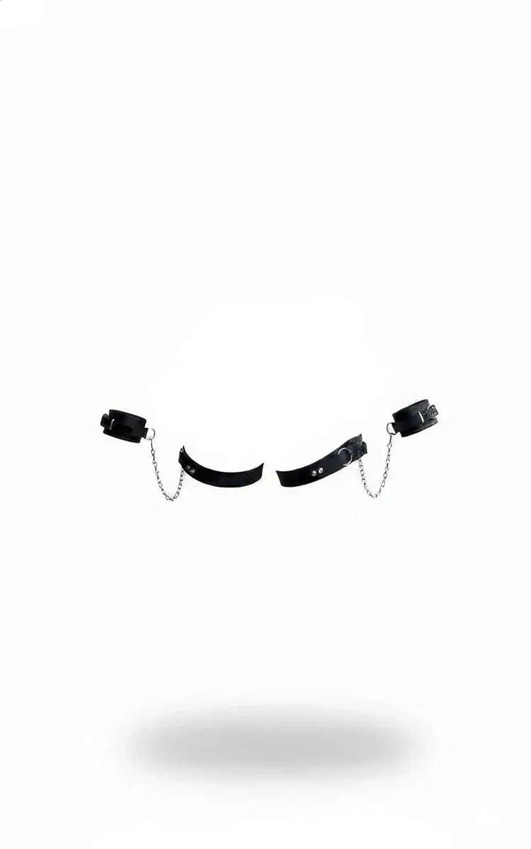 Black Harness Set Leather Cuff Set with Chain Detail - APFT300