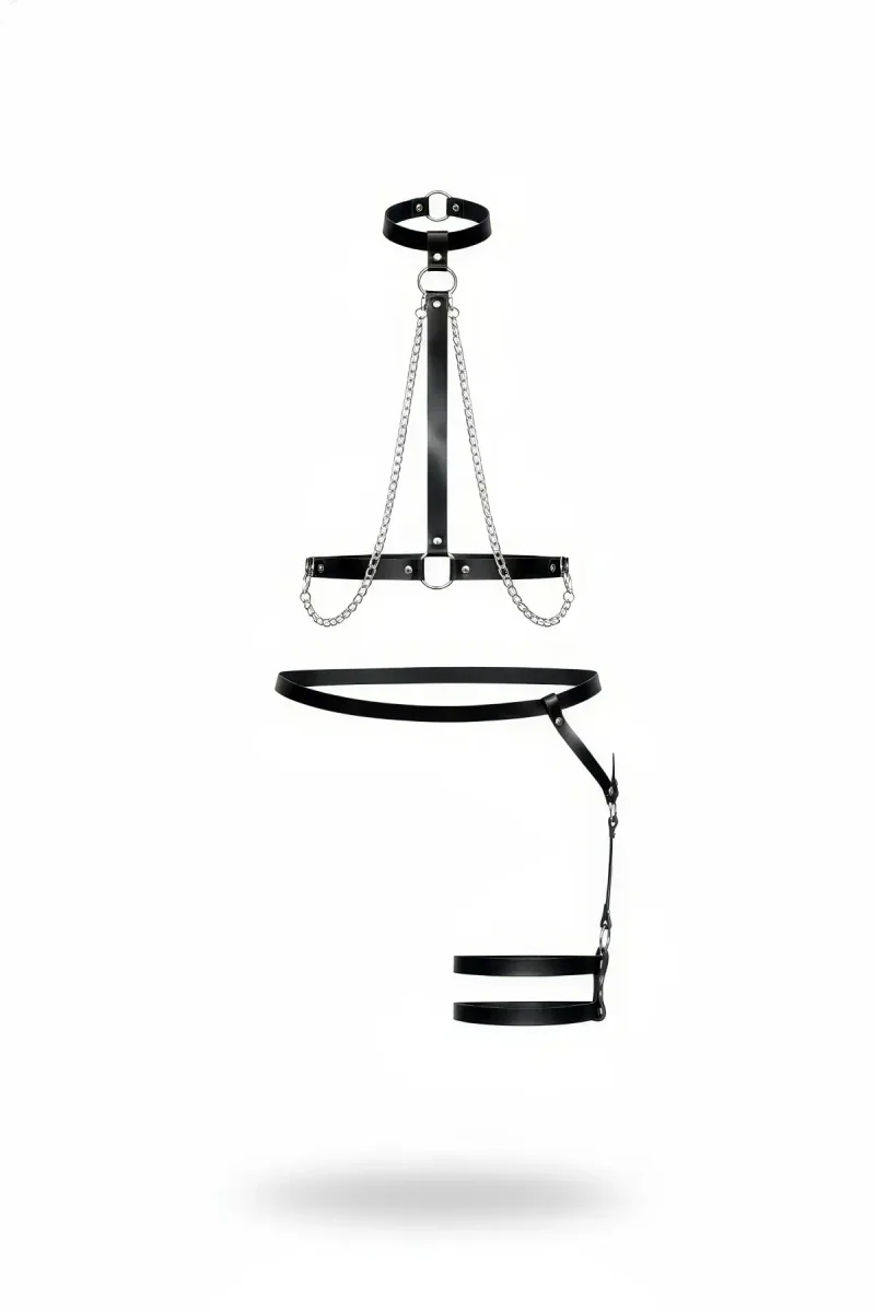 Home/Womens Harness/Harness Set/Black Harness Suit Chain Detailed Collar and Body Accessory - APFT713