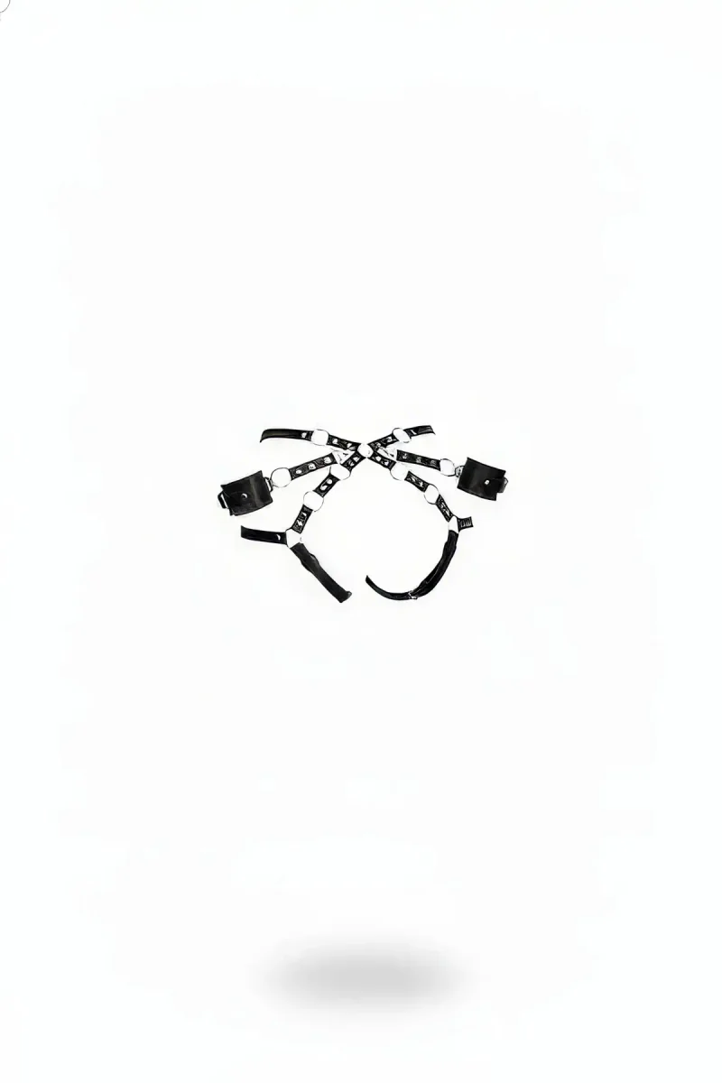 Home/Womens Harness/Harness Set/Black Harness Suit Leather Metal Ring Detailed Body Accessory - APFT540
