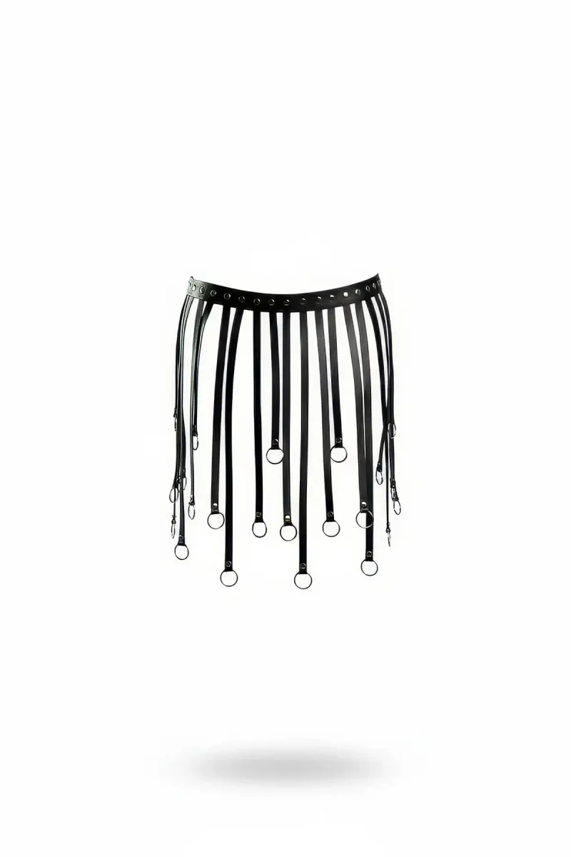 Black Skirt with Leather Buckle and Cross Detail Skirt with Cage Structure - APFT785
