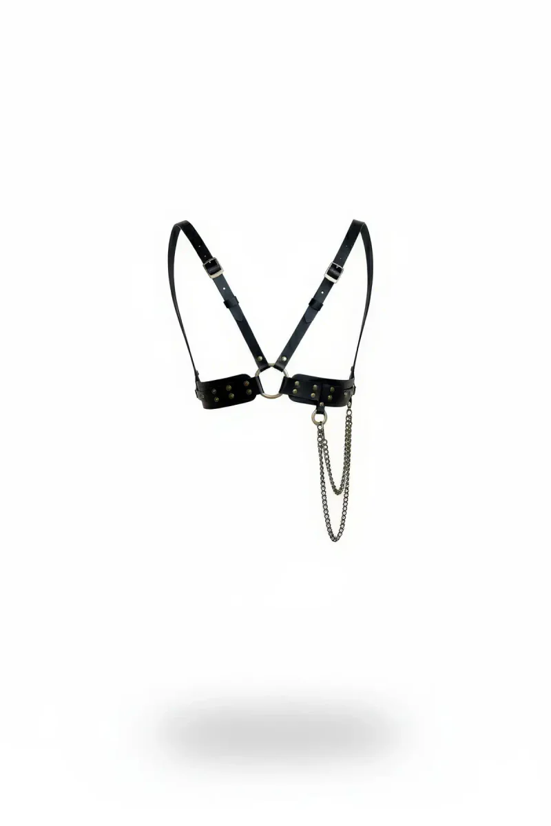 Black Women's Belt Leather Chain Detailed Body Accessory - APFT908
