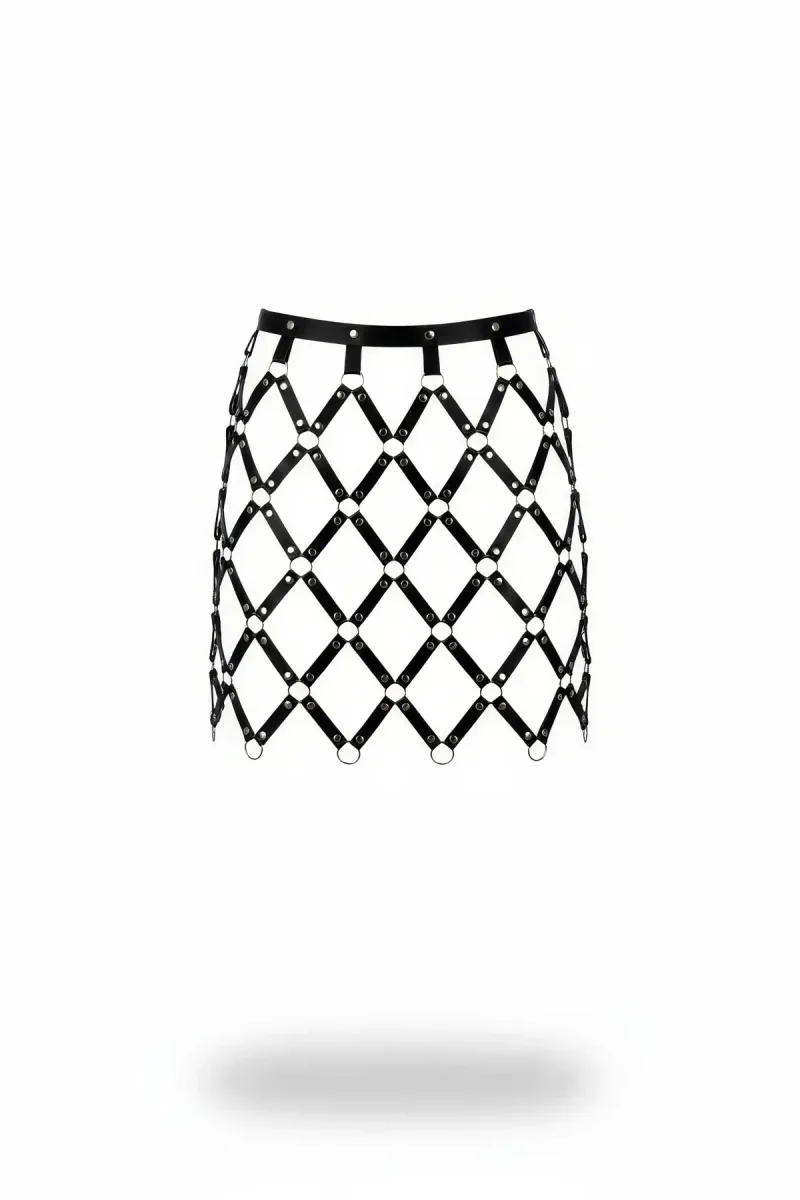 Black Skirt with Leather Buckle and Cross Detail Skirt with Cage Structure - APFT785